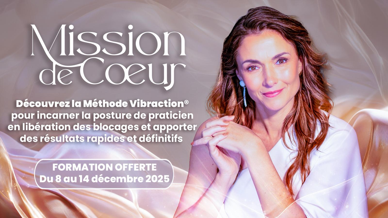 Du 08 au 14 décembre 2025, retrouvez Hélène Pavot et l’équipe de la Méthode Vibraction® pour 5 rencontres exclusives et offertes + 1 bonus qui vous permettront d’incarner la posture idéale pour un impact immédiat dans votre vie et celle de vos patients ou clients.
